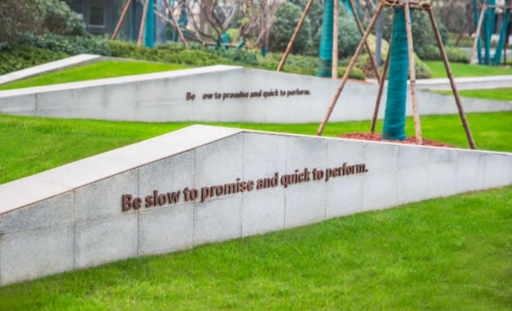 走進已交付的品質(zhì)社區(qū),藝術(shù)化景觀,再現(xiàn)常春藤學院風采。隨處可見的世界名校校徽校訓,潛移默化影響孩子視野;