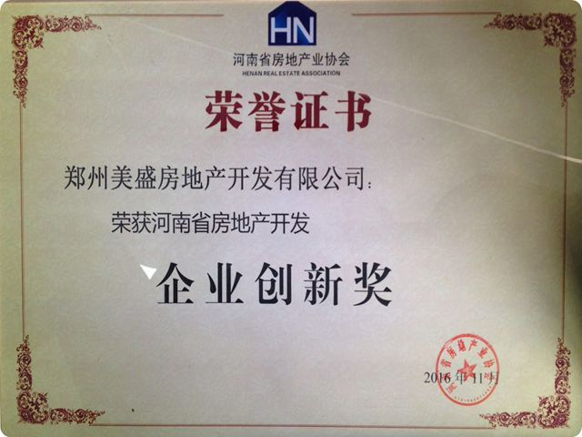 鄭州美盛房地產開發有限公司憑借規劃創新、裝飾設備創新、服務創新等優勢獲得河南省房地產開發“創新企業獎”。