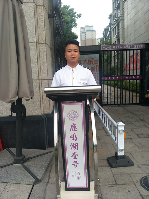 除日常做好秩序主管分配的工作之外,對部門員工進行崗位培訓,一遍又一遍,早晨叫醒我們的不是鬧鐘也不是清晨的第一縷陽光,而是響亮的口號聲和整齊的踏步聲,晚上提醒我們睡覺的不是晚安曲也不是呢喃聲,而是他訓練著隊員們的口號聲,而這些都只為給客戶一種整齊標準、安全放心的無聲承諾。