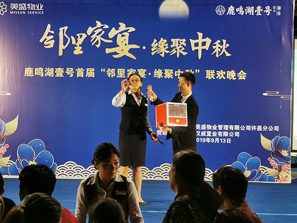 慶祝中秋佳節,喜迎新中國成立70周年大慶,王總上臺為本次活動致辭,致辭中表達了實現鄰里間的相識、相知、相助,把一個個溫馨的小家庭串成和睦的大家庭,共建“鄰里關愛、團結互助”的鄰里關系。