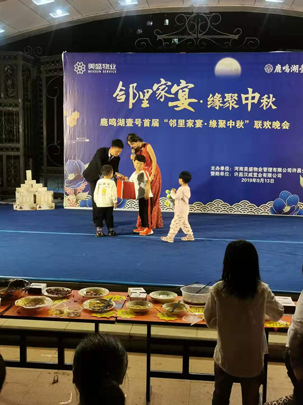 農歷八月十五,是人人皆知的中秋節。至中秋,菊黃桂香。在這樣一個歲月沉淀感悟、彌漫神話色彩的日子里,為豐富社區業主的業余生活,為大家在緊張的工作之余,放下身外的繁雜充分放松、享受節日的快樂,共同創造和睦的鄰里空間,便于服務中心更好的管理與服務,塑造小區品牌形象,共建和諧家園。在中秋節到來之際,鹿鳴湖壹號物業服務中心特開展“鄰里家宴·緣聚中秋”聯歡晚會。