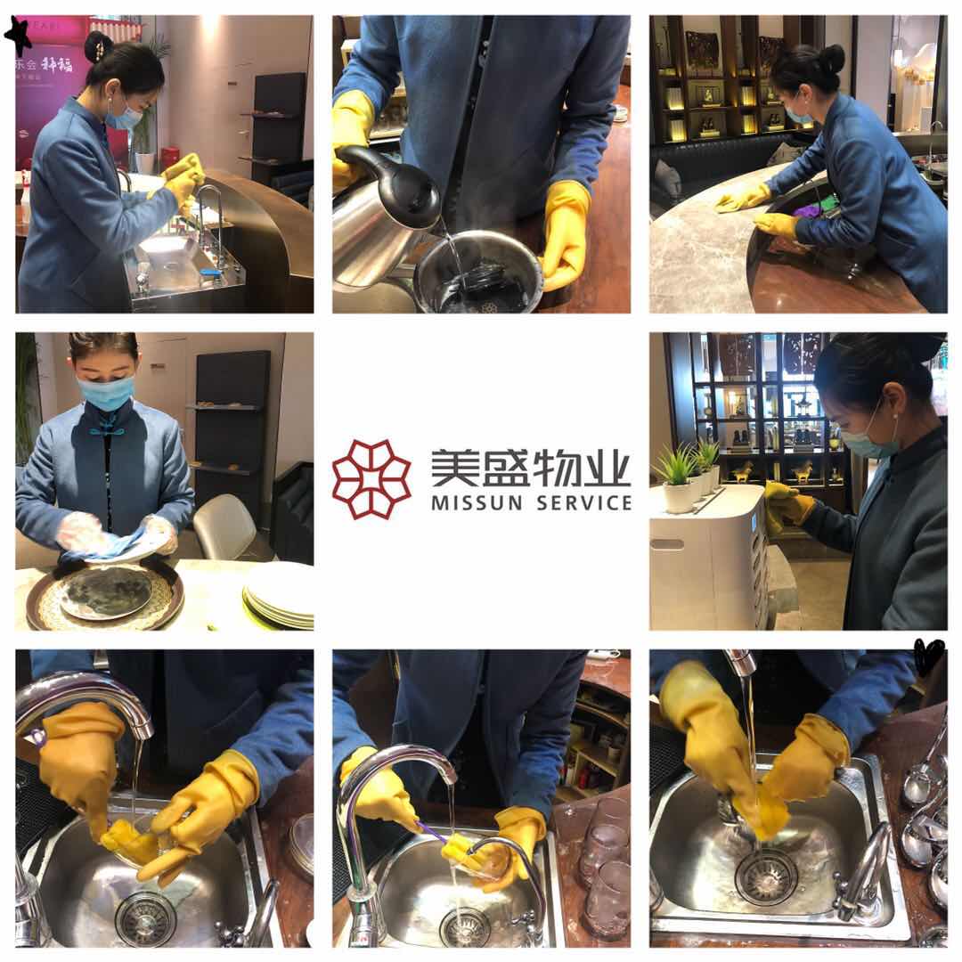 案場水吧臺、接待區(qū)物品進行全面清潔、消毒;樣板間、衛(wèi)生間全面消毒擦拭、地毯清潔。